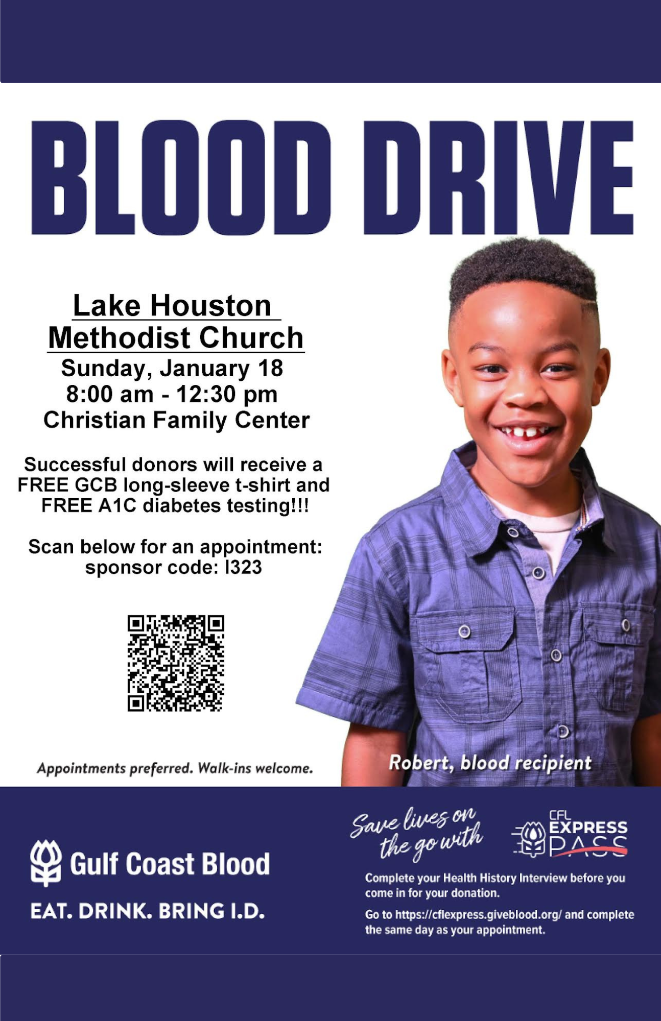 We’re hosting our quarterly blood drive on Sunday, January 18th, from 8:00 AM–12:30 PM in the CFC. Donating blood is a simple way to make a life-saving difference, and walk-ins are welcome throughout the morning. If you prefer to plan ahead, click the button below to schedule an appointment and help give the gift of life.