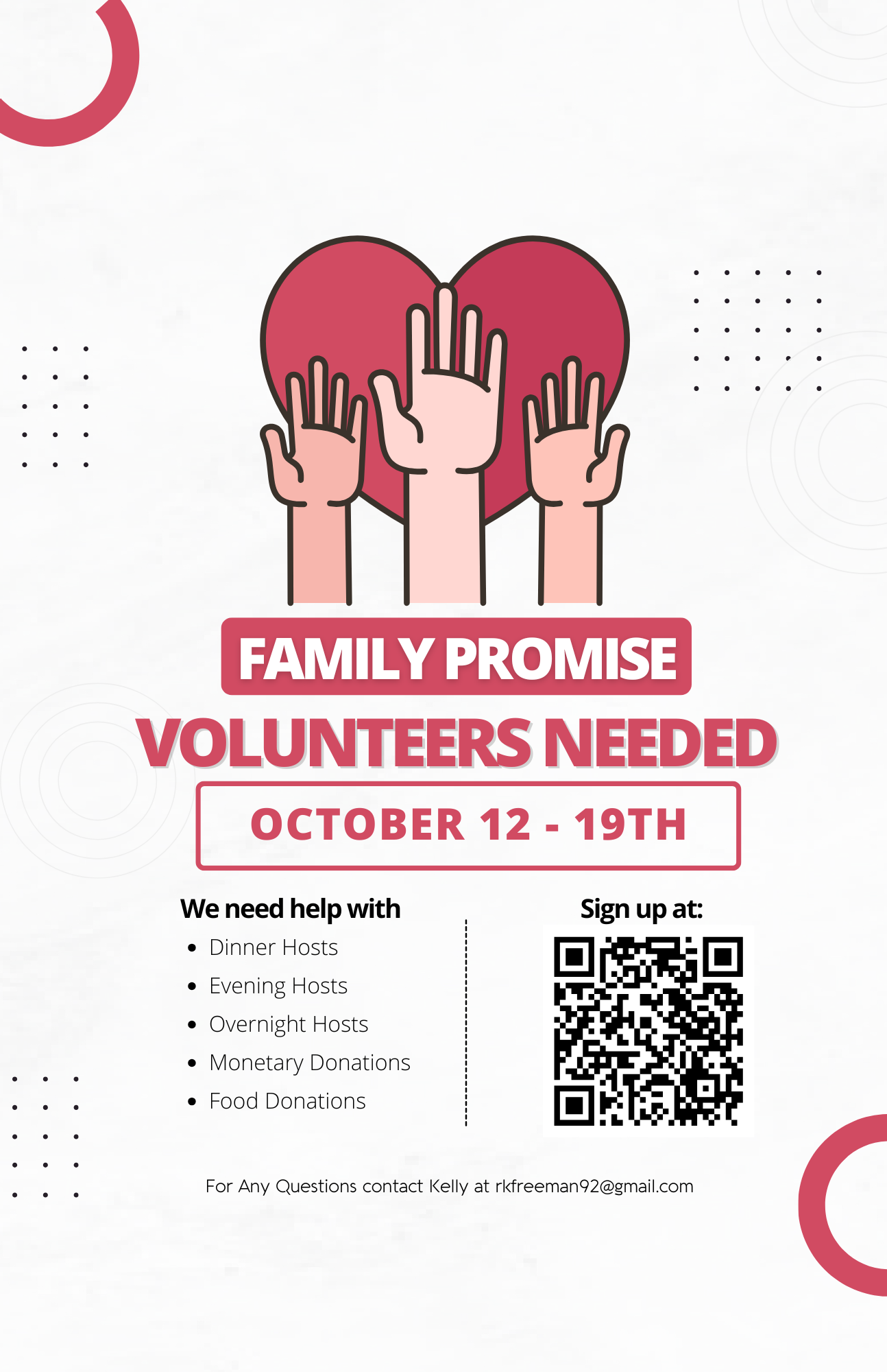 Our next opportunity to serve families in need who will be staying at our church is the week of July 20th- 27th