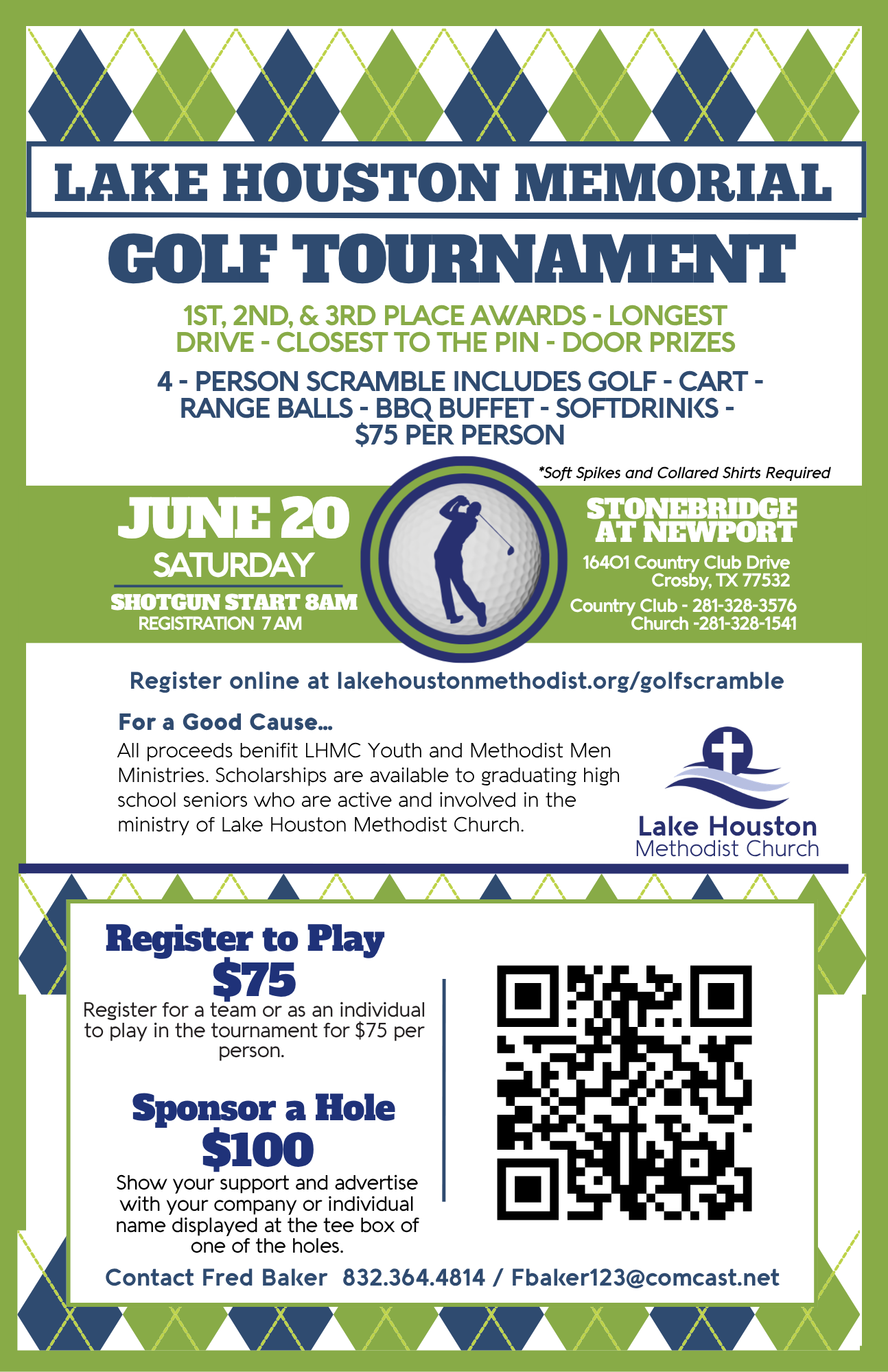 All Proceeds of the tournament will be used for Youth Senior Scholarships, Youth Summer Missions and the ongoing ministry of the Methodist Men.